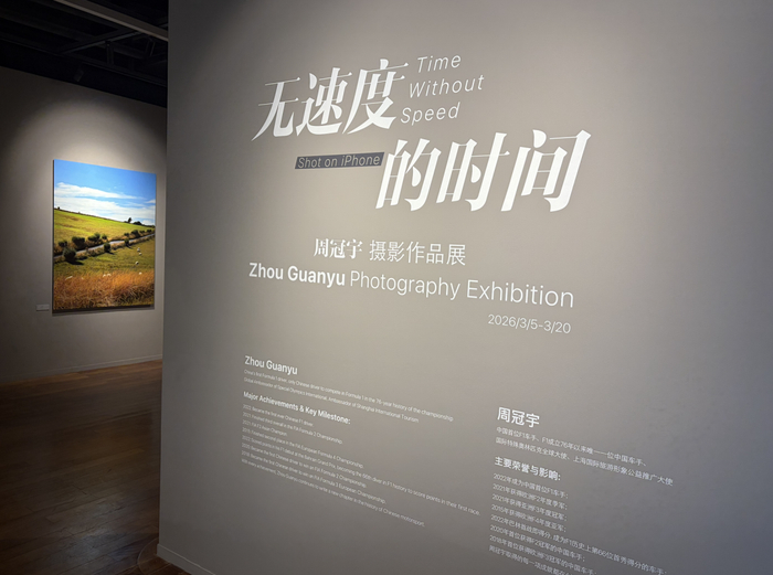 周冠宇记录的围场内外,名为“无速度的时间”。(图/作者 摄)在这方面,作为“车手粉”的罗拉,还没到围场时就已经感受到幸福。她喜欢梅赛德斯车队的英国车手乔治·拉塞尔。这位明星车手一到上海,就去外滩与东方明珠合照,还在广告拍摄里开起中国特色三轮。一米八五高的拉塞尔外形清秀俊朗,符合颜粉们的需求,但罗拉最喜欢的还是中文粉丝圈对F1花式造梗的氛围。